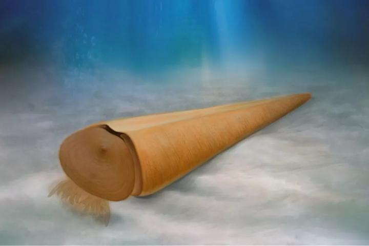 image: Reconstruction of Triplicatella opimus from the Chengjiang Lagerstätte in a proposed deposit-feeding lifestyle.