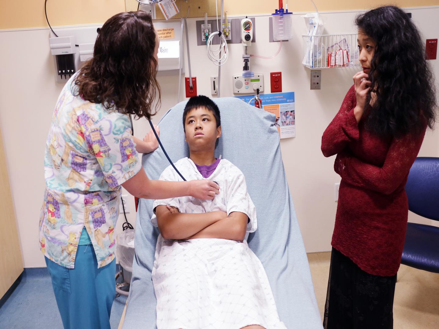 image: A nurse examines a patient in the Emergency Department of Cincinnati Children's, where researchers successfully tested artificial intelligence-based technology to improve patient recruitment for clinical trials. Researchers report test results in the journal JMIR Medical Informatics.