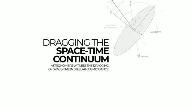 video: Artist's depiction of a neutron star orbiting a rapidly-spinning white dwarf. The white dwarf's spin drags the very fabric of space-time around with it, causing the orbit to tumble in space.