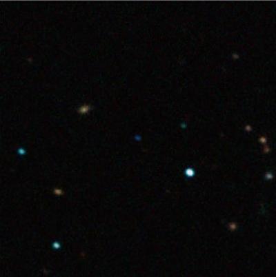 This closeup of an image captured by the SOFI instrument on ESOs New Technology Telescope at the La Silla Observatory shows the free-floating planet CFBDSIR J214947.2-040308.9 in infrared light. This object, which appears as a faint blue dot at the centre of the picture, is the closest such object to the Solar System.