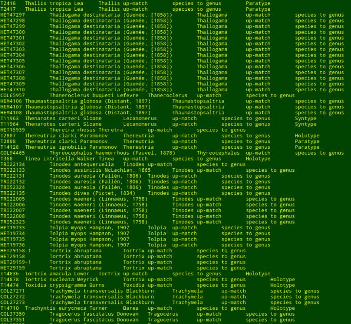 Another worrying result concerned type specimens - the reference specimens upon which scientific names are based. On a number of occasions, the aggregators were found to have replaced the name of a type specimen with a name tied to an entirely different type specimen.