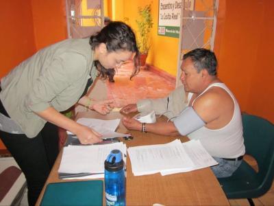 U-M medical student, Hema Datwani, screens patient for study eligibility in Mexico.
