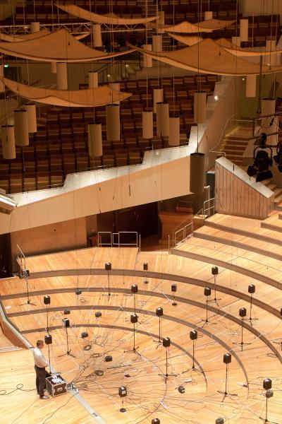 Researchers have developed a new way to capture the acoustics of a concert hall with a symphony orchestra simulator. It consists of 34 loudspeakers reproducing synchronised recordings of individual musicians playing parts of symphonies in an anechoic chamber.