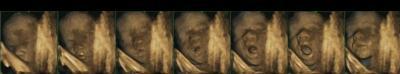 This is a sequence showing a fetus at 25 weeks reacting to touch. The fetus opens its mouth after touching it with its hand.