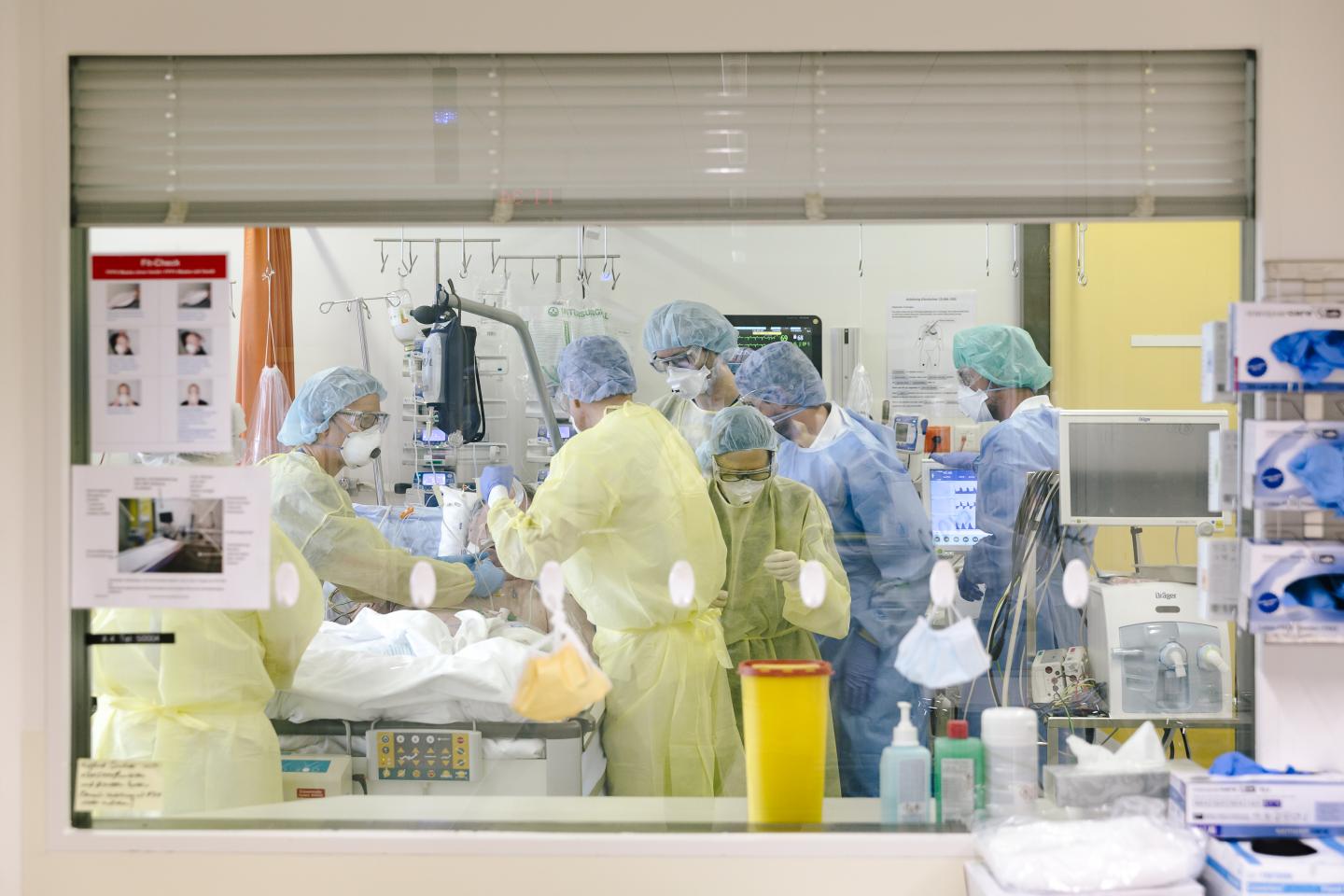 image: Treatment of a patient with Covid-19 in the intensive care unit of the University Hospital Basel.