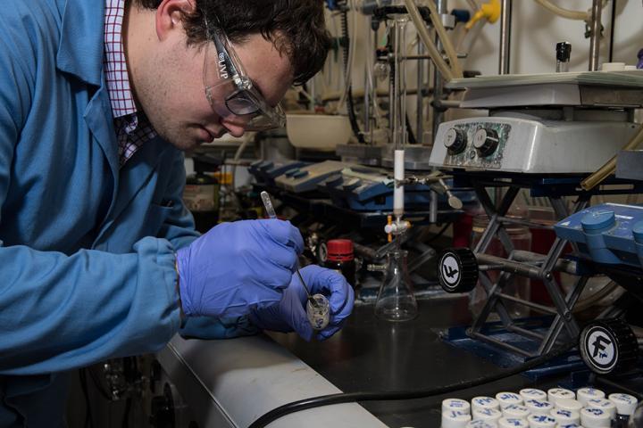 image:Â Graduate student Tyler Fulton prepares samples of small molecules in a lab at Caltech.
