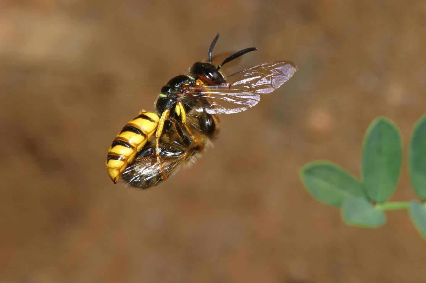 image: A female beewolf carries a paralyzed honey bee to its nest.