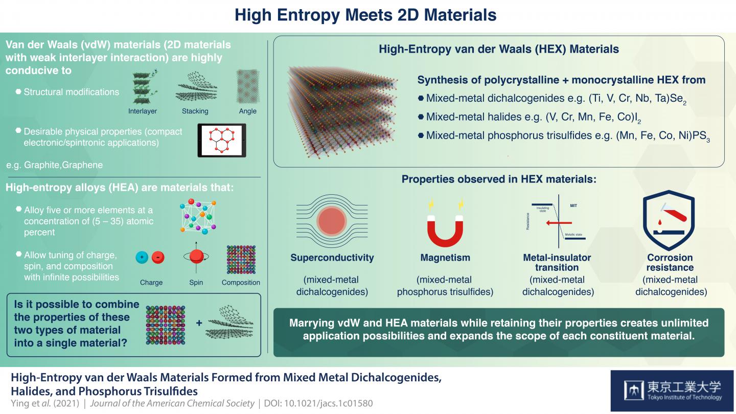 With these encouraging findings, the team contemplates practical applications of HEX materials. "The high corrosion resistance could be a promising route for the design of heterogeneous catalysts. The concept of high entropy could also be introduced to other low-dimensional materials, and considering their infinite possibilities, we think these materials deserve the focus of the research community," says an excited Prof. Hosono.