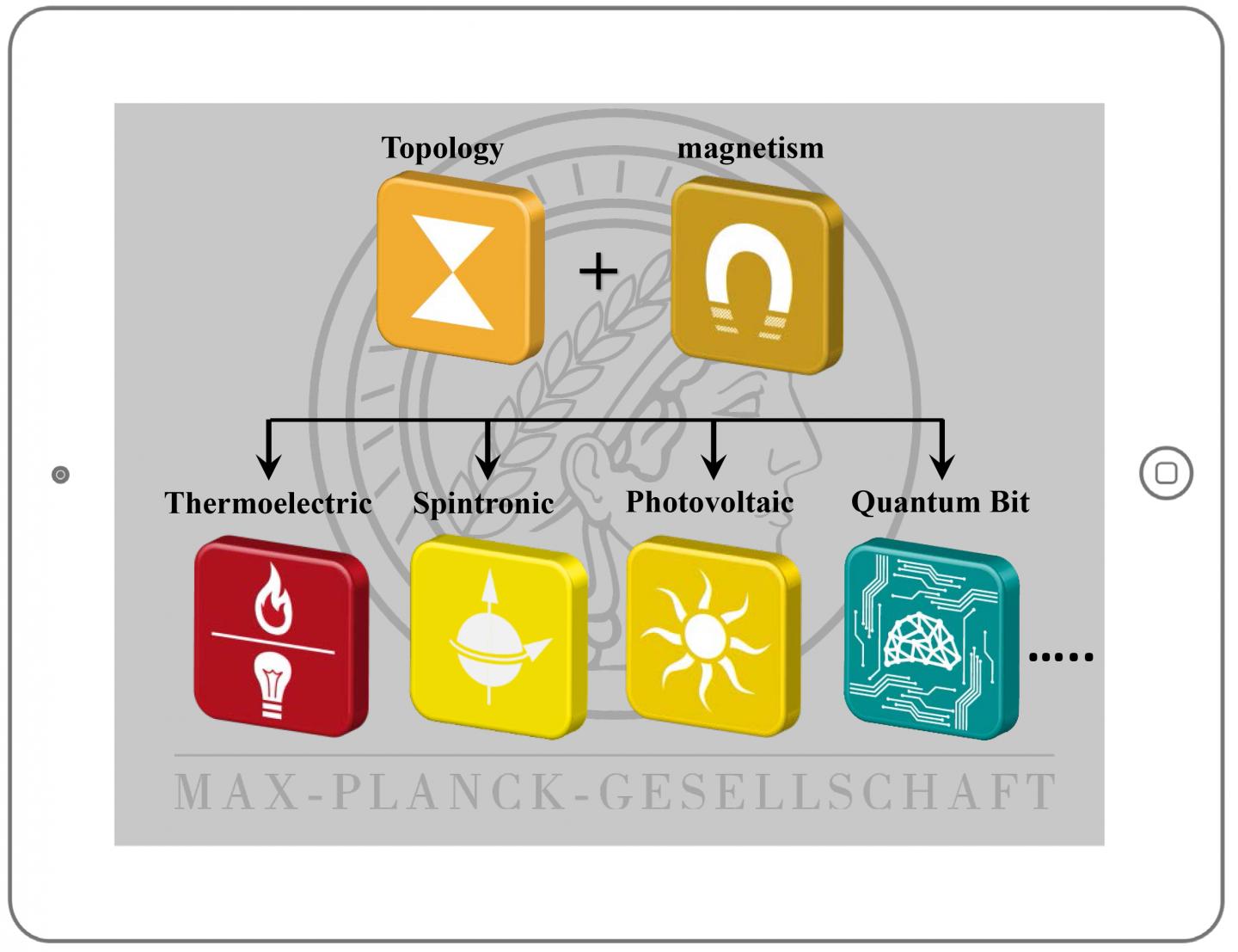 image: The combination of magnetism and topology leads to new sciences and applications in thermoelectric, spintronic, photovoltaic, quantum computing, and other quantum technologies