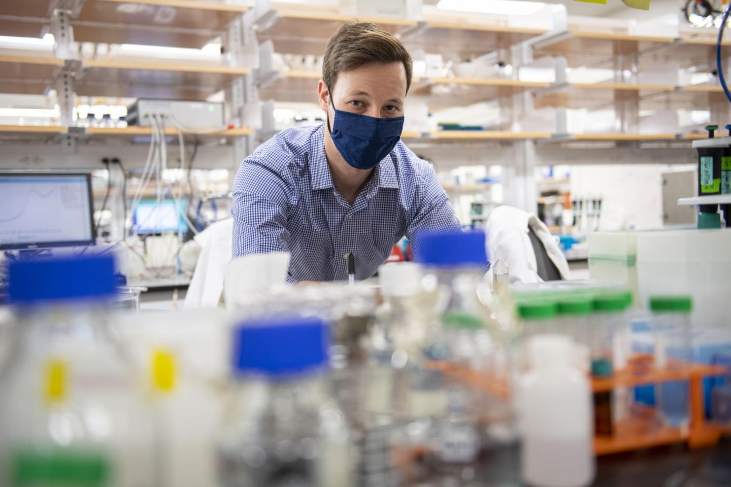image: UC student Andrew Eisenhart used quantum simulations to understand a common solvent that holds promise for green energy.