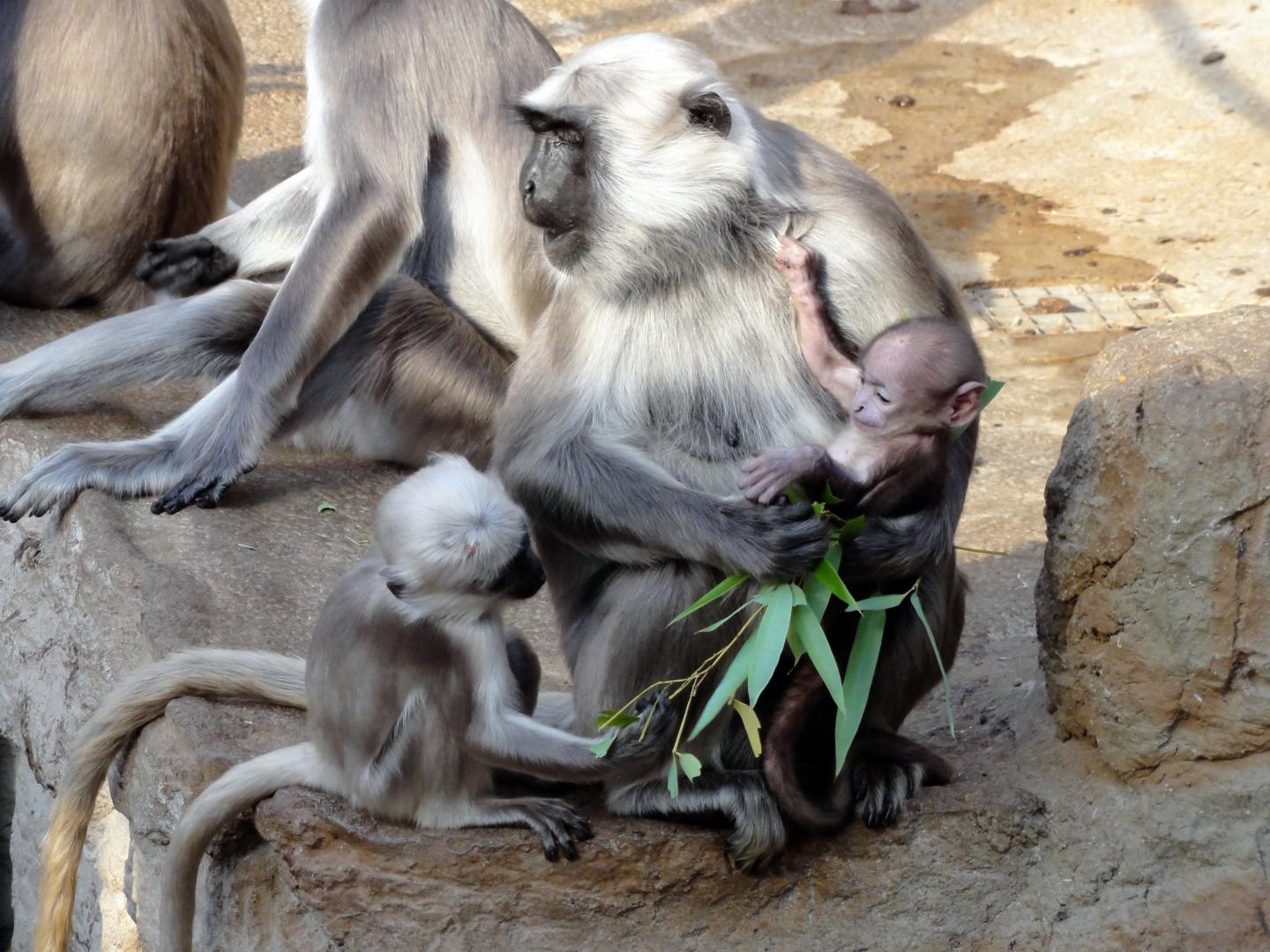 image: Parents have to invest a lot of time and energy until their offspring are independent - like this Hanuman langur mother with her offspring. (Karin Isler, ZOOM Erlebniswelt, Gelsenkirchen)