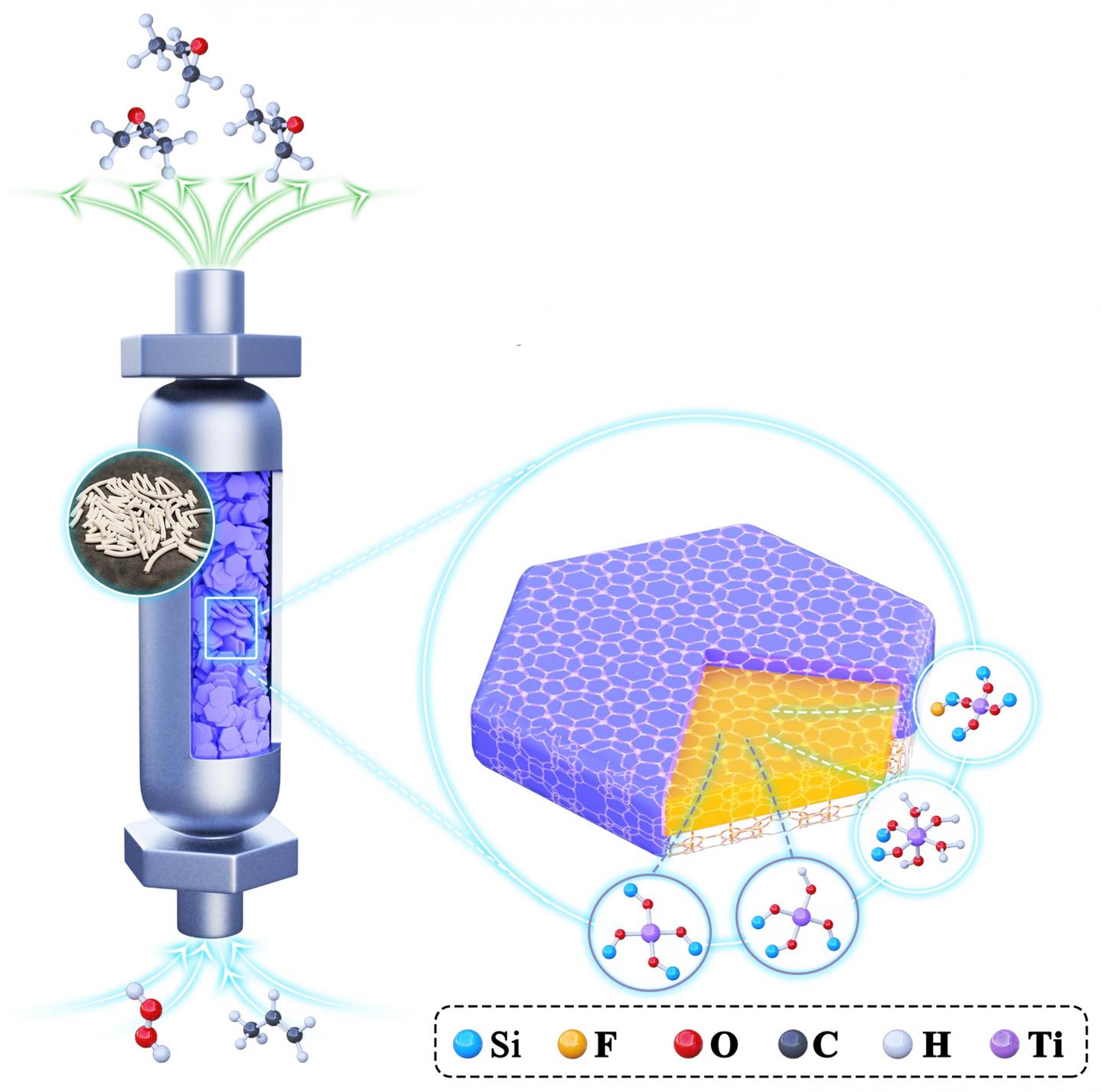Recently, a research team led by Prof. Peng Wu from East China Normal University, China designed and synthesized a structured binder-free MWW-type titanosilicate catalyst with attractive HPPO performance via a combination method of shaping, recrystallization and chemical modification of Ti sites. The controlled dual- templates-assisted hydrothermal recrystallization converted the amorphous SiO2 binders in extruded SiO2/Ti-MWW catalyst to crystalline zeolite phase. Actually, such procedure could kill two birds with one stone: mass transfer problems in the shaped catalyst and chemical modification of micro-environments of the active Ti sites were conquered simultaneously. It was found recrystallization not only released the part of Ti sites within the micropores imprisoned by binders, improving the diffusion efficiency and the accessibility of Ti sites, but also constructed more active open framework TiO6 species and abundant internal silanol nests, which promoted the accumulation and activation ability of H2O2 inside the Ti-MWW monolith.