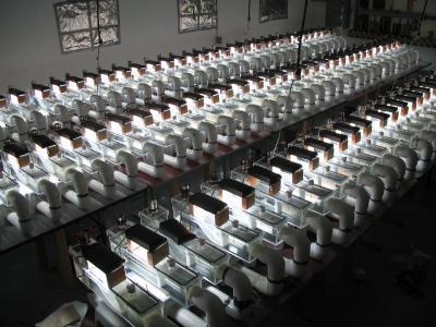 In the experiments, the channels inside each flume were lined with a continuous slab of molded plastic. The plastic provided a growth surface for the algae, and variations in the shape of the slab's surface created a variety of water features---riffles, pools and eddies, for example---found in real streams.