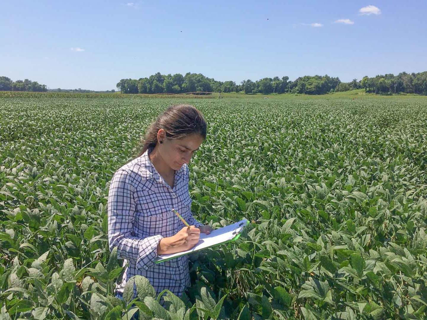 image: Recently, Mirian Pimentel, a PhD student, and a group of plant pathologists at Southern Illinois University, discovered a promising new tool to fight sudden death syndrome (SDS). They observed that several biological control agents (BCA), or beneficial fungi, were able to substantially reduce the growth of the causal pathogen agent of SDS. In some cases, these agents even overgrew the pathogen, parasitized it, and displayed evidence of "feeding" on it.