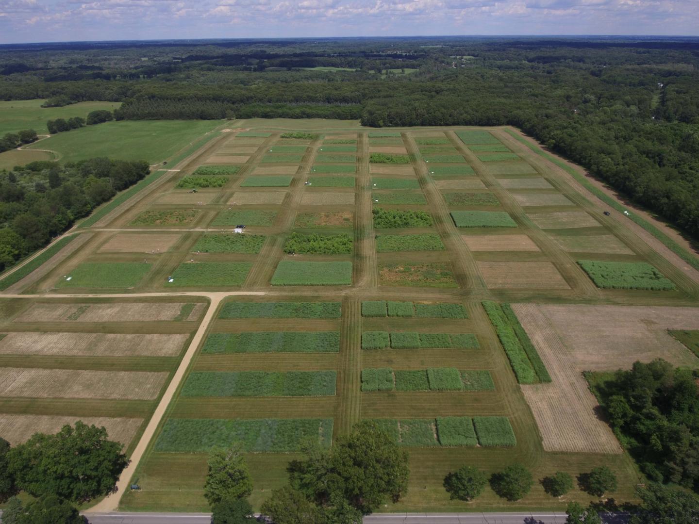 image: Photo of the Biofuels Cropping System Experiment in Michigan, taken by an unmanned aerial vehicle (UAV). Research conducted by Ben-Gurion University and Michigan State University