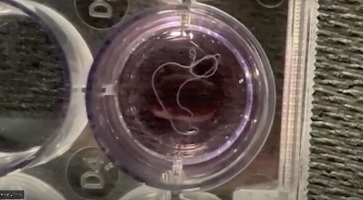 image: Researchers used video tracking to monitor parasitic worms exposed to diethylcarbamazine in a laboratory setting.