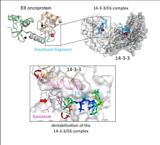 Although most oncological diseases are not infectious, some viruses can cause cancer. According to the World Health Organization, two HPV subtypes account for 70% of cervical cancer cases and pre-existing conditions. Moreover, HPV considerably increases the risks of other types of cancer. Within an infected cell, a viral protein called E6 binds with human proteins from the 14-3-3 family. 14-3-3 proteins are present in cells of all eukaryotic organisms and can interact with hundreds of other important players of intracellular processes to regulate cell division, gene activity, metabolism, cell death, and intracellular signaling. If the activity of 14-3-3 proteins is disturbed, cells can become susceptible to viruses or cancer, which is a double danger in the case of HPV.