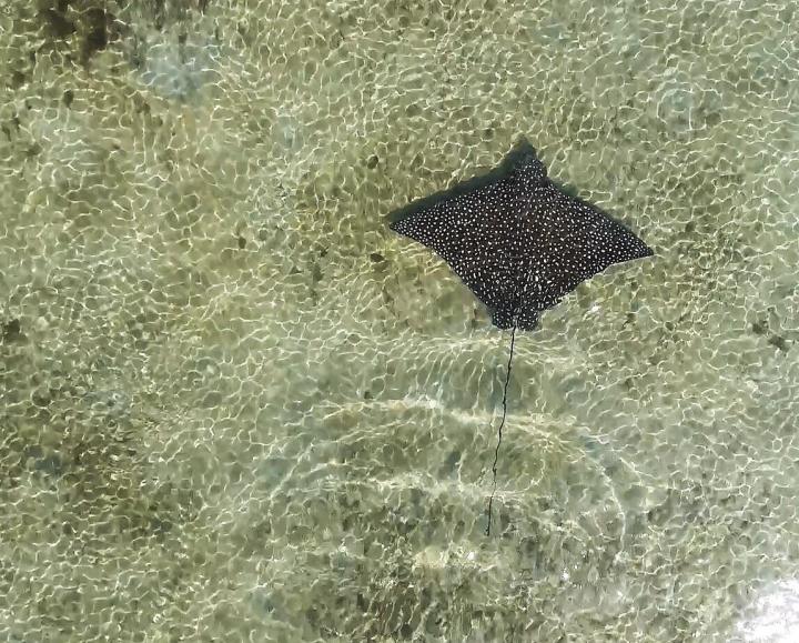 Results of the study, published in the journal Endangered Species Research, show that rays use the deeper portions of the Indian River Lagoon, along Florida's southeast coast, during the day and shallower portions during the night. In addition, they move faster while in the ocean and lagoonal habitats and slower in channels and inlets. This information suggests that whitespotted eagle rays may spend more time foraging at night in the shallow water of the lagoon than during the daytime. These prolonged observations revealed affinities for habitats of considerable recreational and commercial importance, such as inlets, channels, and clam aquaculture lease sites close to shore.