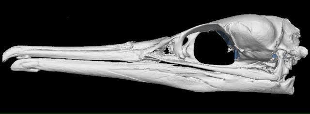 This video shows the three-dimensional scan of an albatross (Phoebastria immutabilis) skull and brain endocast (shown in blue) taken with high-resolution X-ray computed tomography. The specimen is one of more than two dozen skulls of modern birds, early extinct birds, and closely related dinosaurs scanned for a recent study on "bird brains" led by the American Museum of Natural History.