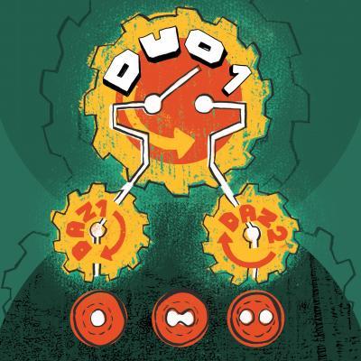 This is an artist's interpretation of the genetic circuit directing the production of twin sperm in each pollen grain -- in which the master control gene DUO1 switches on the DAZ1 and DAZ2 proteins to control cell division to allow twin sperm production to proceed.