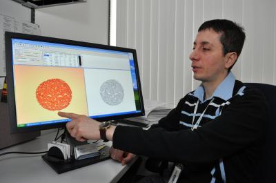 Mauro Tambasco, Ph.D., analyzes breast tissue samples on his computer.