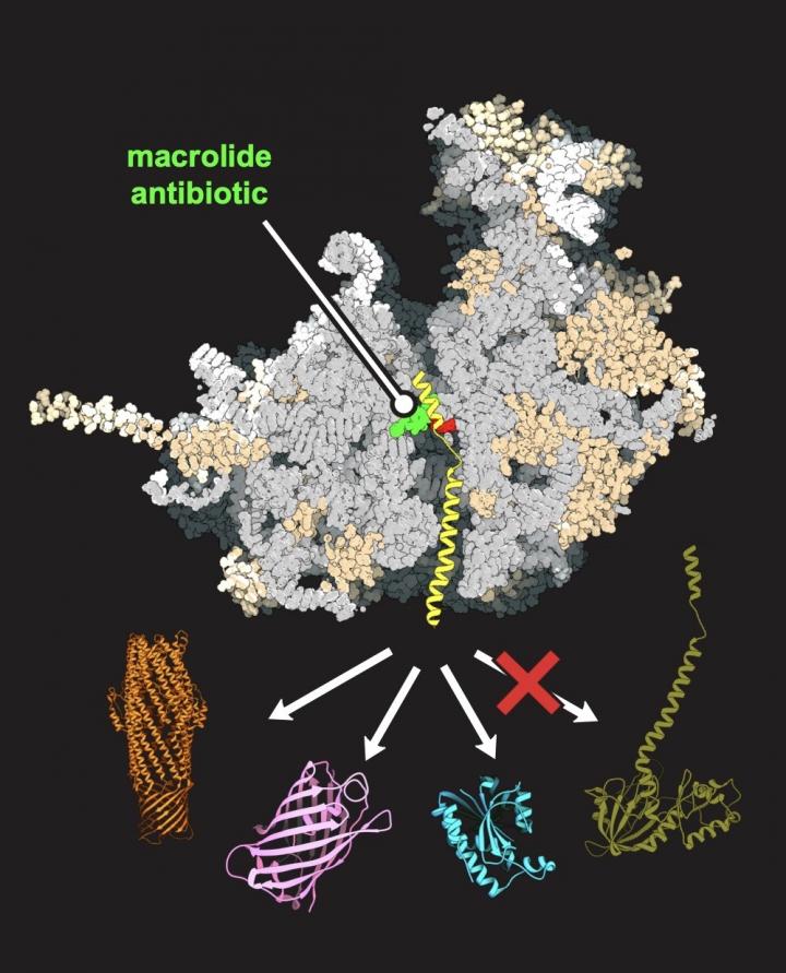 "Through this analysis, we understood that depending on a protein's specific genetic signature -- the presence of a 'good' or 'bad' sequence -- the macrolide can stop its production on the eukaryotic ribosome or not," Mankin said. "This showed us, conceptually, that antibiotics can be used to selectively inhibit protein synthesis in human cells and used to treat human disorders caused by 'bad' proteins."