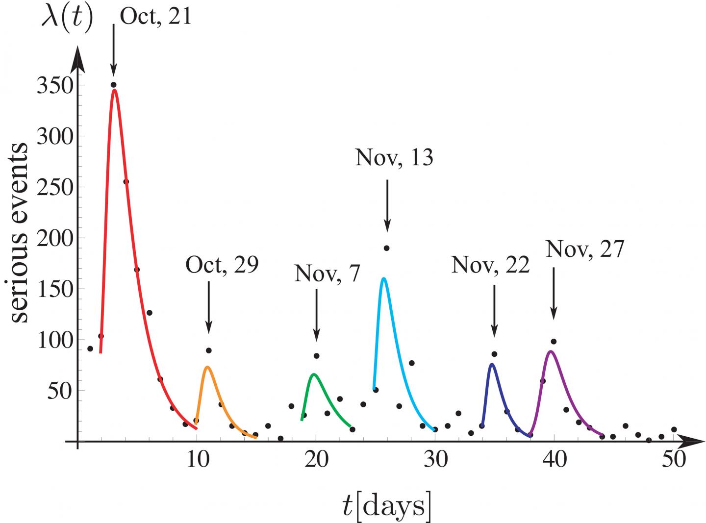 image: The dynamics of serious rioting events during the 2019 Chilean social unrest.