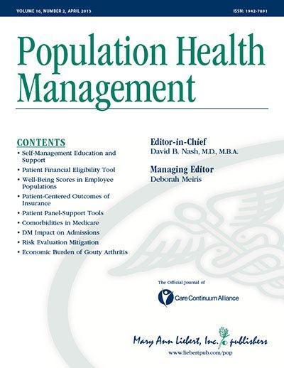 Population Health Management is an authoritative peer-reviewed journal published bimonthly in print and online that reflects the expanding scope of health care management and quality.