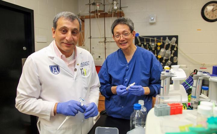 image: Dr. Babak Baban, DCG immunologist and associate dean for research and Dr. Jack Yu, physician scientist and chief of pediatric plastic surgery at MCG