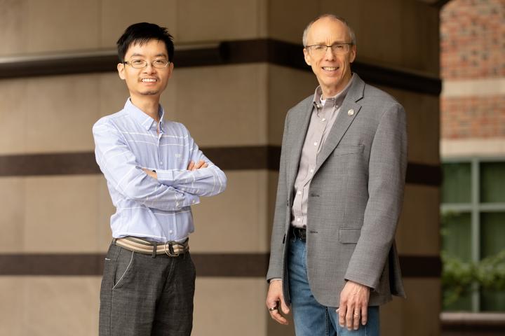image: Researchers Yue Liu, left, and Jeffrey Moore are the first to use mechanical force to access unconventional chemical reaction pathways along potential energy surfaces. The new technique could help researchers produce fuels, fertilizers, pharmaceuticals and other materials more efficiently.