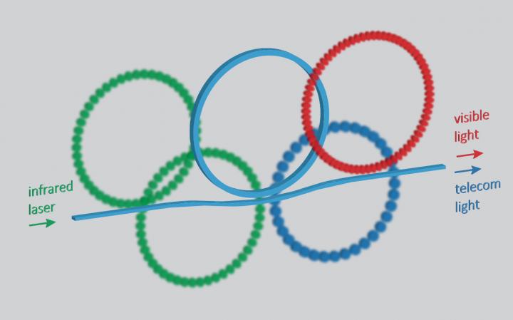 WASHINGTON -- Researchers have designed a new chip-integrated light source that can transform infrared wavelengths into visible wavelengths, which have been difficult to produce with technology based on silicon chips. This flexible approach to on-chip light generation is poised to enable highly miniaturized photonic instrumentation that is easy to manufacture and rugged enough to use outside the lab.