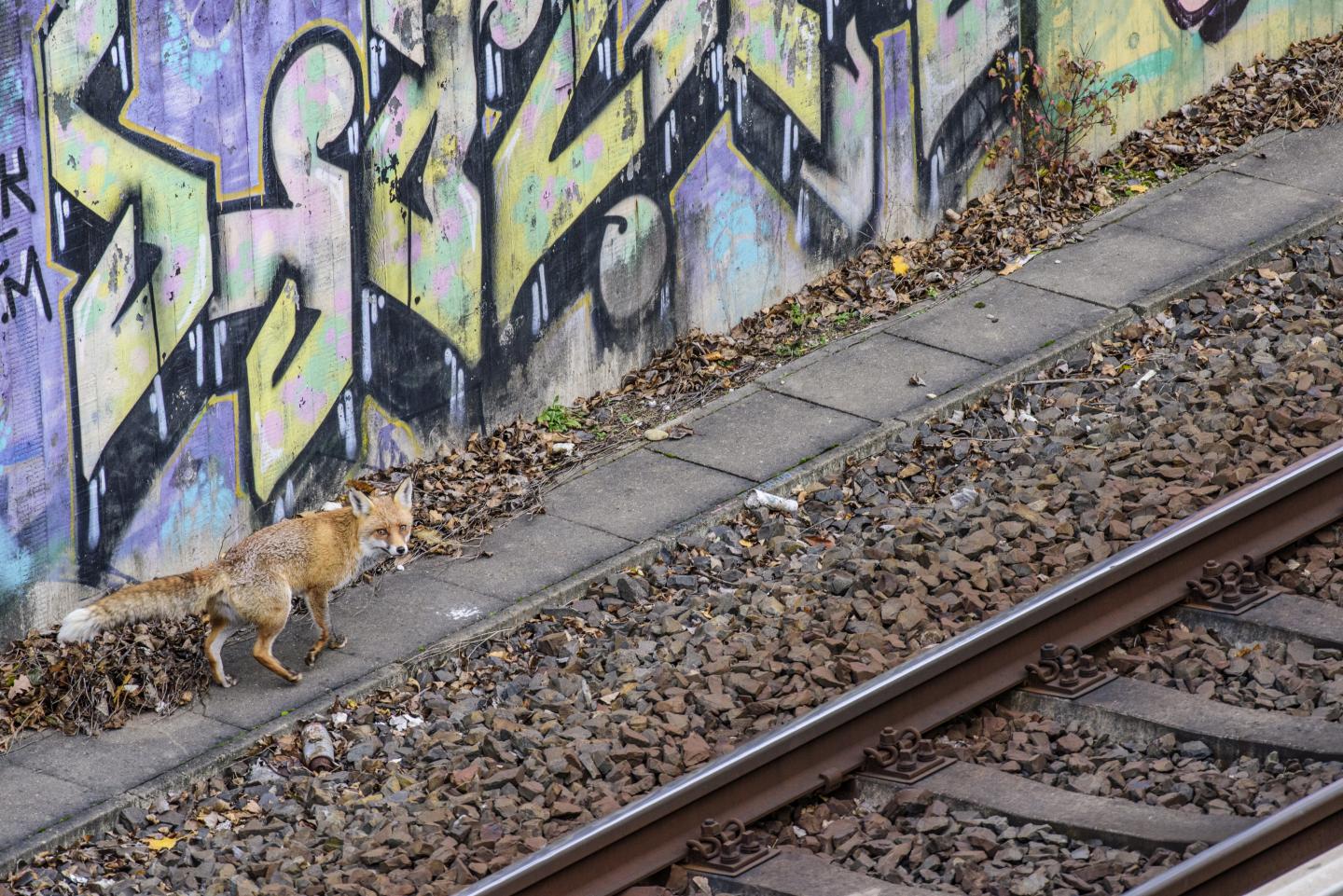 image: City fox on a railway in Berlin.