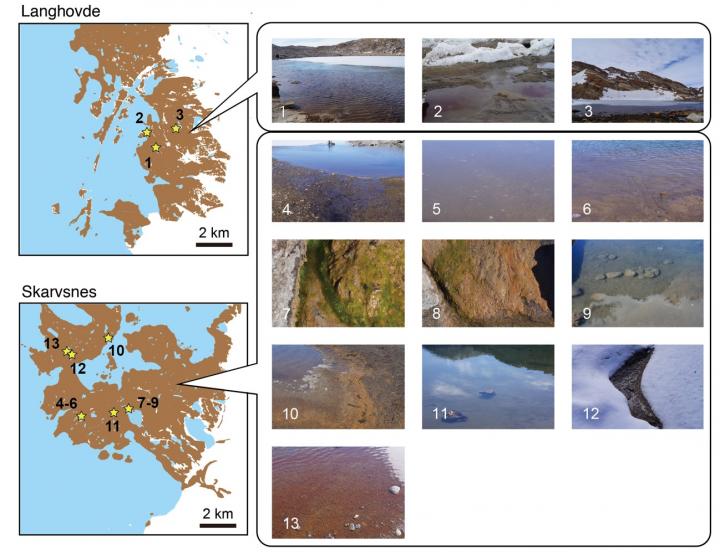 Most of Antarctica is covered with thick snow and ice, however; there are ice-free areas where land is exposed. The ice-free areas occupy only about 0.2% of the area in Antarctica, but a variety of microorganisms have been observed, and the areas are also called "Antarctic oases". Two ice-free areas called Langhovde and Skarvsnes exist near Showa Station, Antarctica, and there are 50 or more large and small lakes in these areas (Fig. 1). Water does not freeze at the bottom of these lakes throughout the year and a unique ecosystem called "moss pillar," that mainly includes moss and fungi, is distributed. Assistant Prof. Yuu Hirose and others of the Department of Applied Chemistry and Life Science at Toyohashi University of Technology focused on shores of freshwater lakes and also puddles and streams from snow meltwater. These environments are completely frozen during the winter season and accordingly are under more extreme stress (e.g. freezing and thawing and temperature changes), than that at the bottom of lakes.