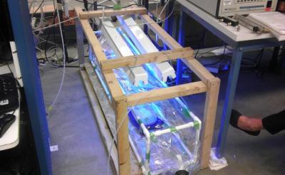 The chamber was connected to a source of nitrogen oxides and a device that reads concentrations of nitrogen oxides. They used ultraviolet light to simulate sunlight, which activates the titanium dioxide and allows it to break down the nitrogen oxides.