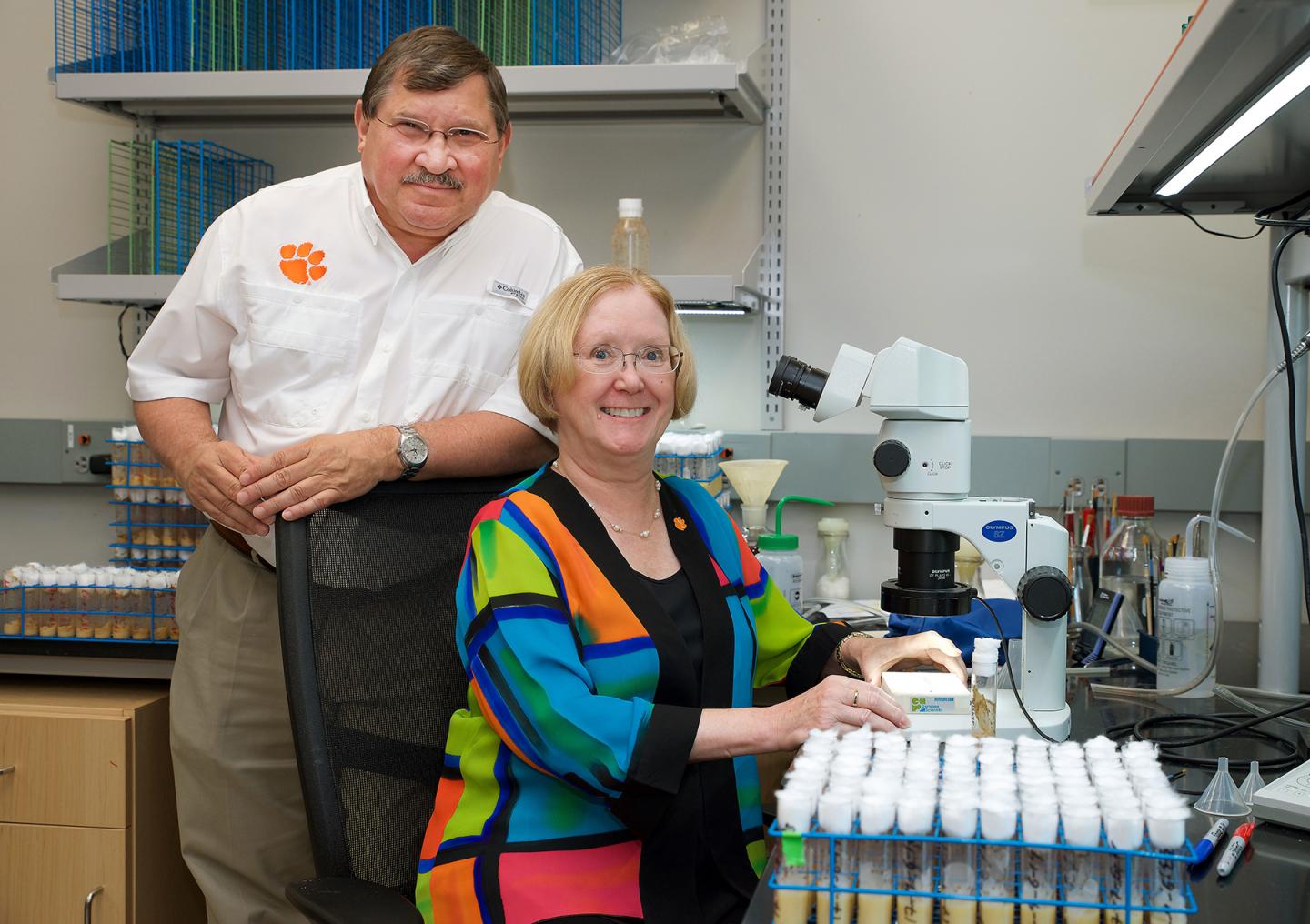 image: Robert Anholt and Trudy Mackay in their Clemson University Center for Human Genetics lab.