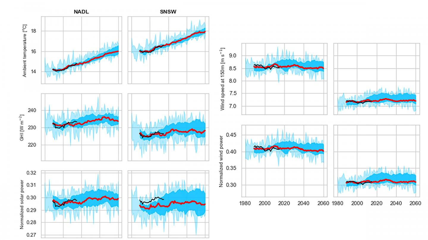 The researchers analyzed key weather variables, such as temperature, surface solar irradiance and wind speed, in 30-minute intervals for the years 1980 to 2060.