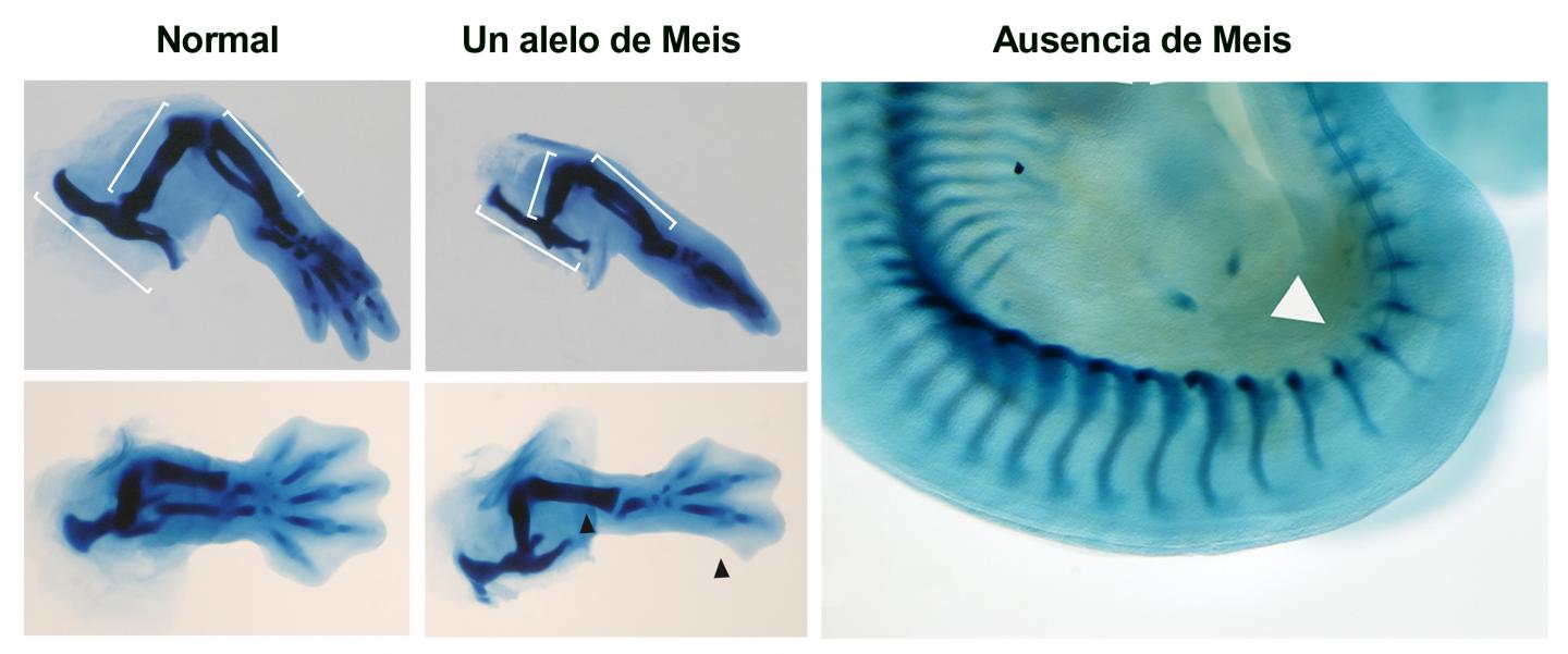 Nevertheless, the pelvis and femur of embryos with a single Meis allele are smaller than those of a normal embryo. Moreover, added Delgado, "These embryos have defects in, or simply lack, posterior skeletal elements such as the fibula and posterior digits."