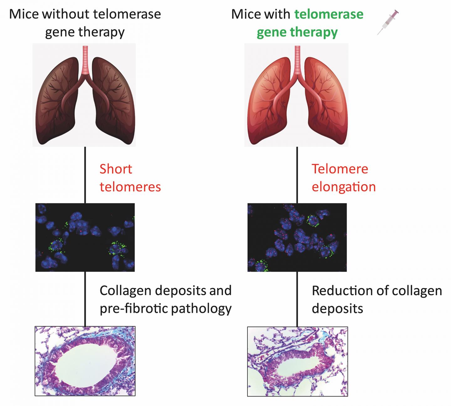 Idiopathic pulmonary fibrosis is a potentially lethal disease for which there is currently no cure and that is associated with certain mutations or advanced age. The Telomeres and Telomerase Group at the Spanish National Cancer Research Centre (CNIO) had previously developed an effective therapy for mice with fibrosis caused by genetic defects. Now they show that the same therapy can successfully be used to treat mice with age-related fibrosis.