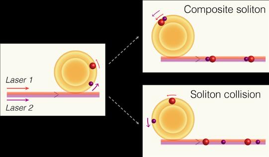 image: Solitons driven by different lasers, can either join each other to form an undivided entity or repeatedly collide into and cross each other.
