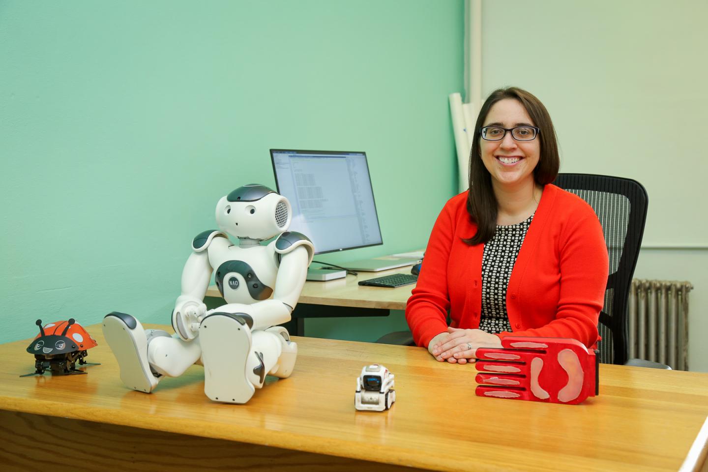 image: Naomi Fitter and Jon the Robot.