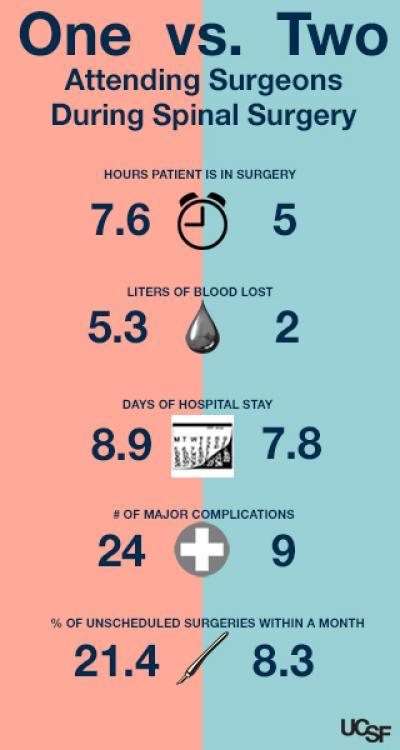 Two heads are better than one, as the saying goes -- and a new study by a duo at the University of California, San Francisco (UCSF) demonstrates how having two attending surgeons in the operating room during spinal surgeries can benefit patients in multiple ways.