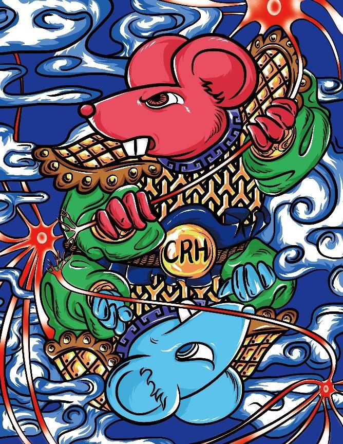 image: This figure shows a kind of Janus image consistent with the behavioral representation of the mice in the experiment. In the picture, the red mouse that holds a sword (CRF neuron) is strong, while the blue mouse that does not touch the sword (CRF neuron) is fearful.