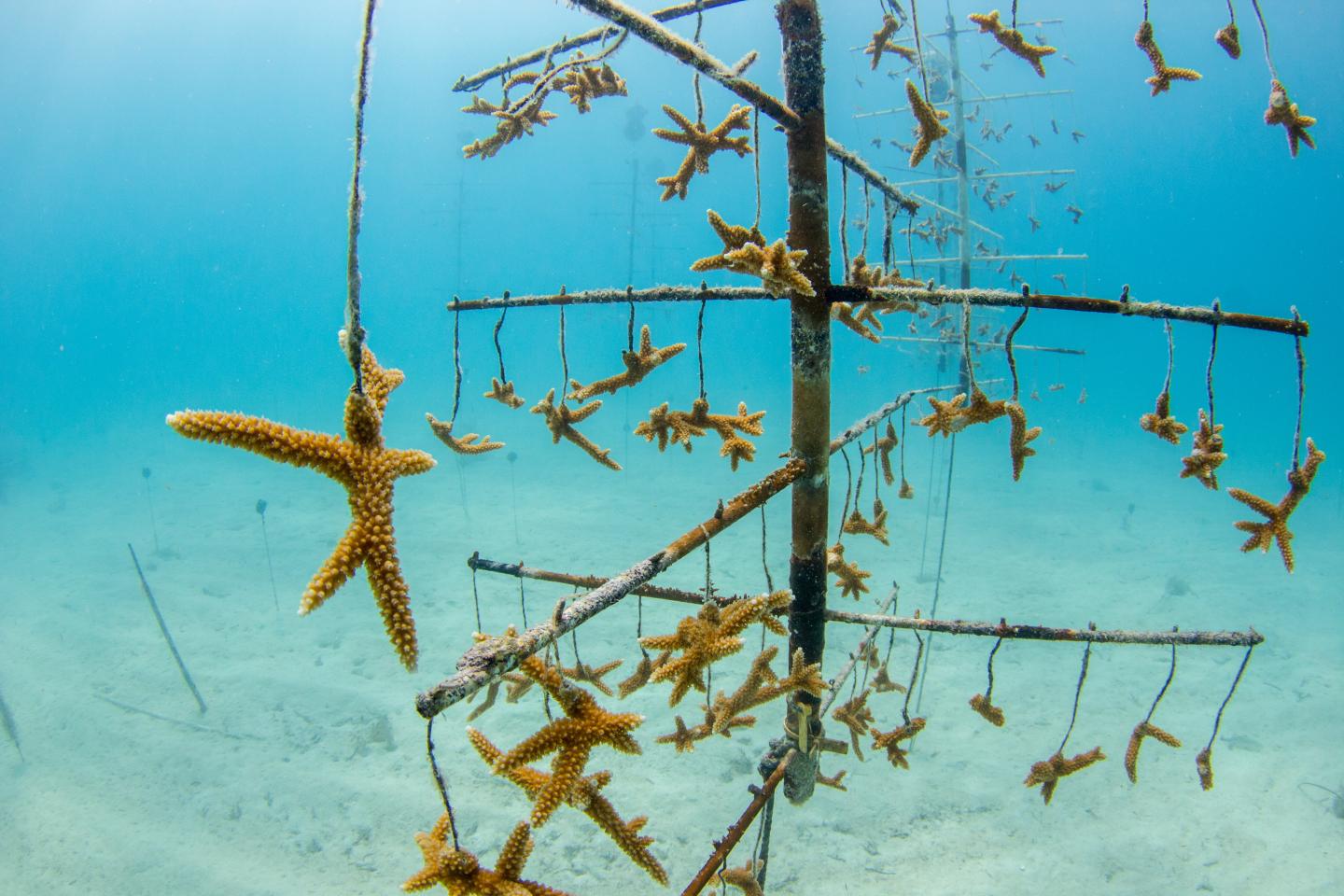 image: Staghorn corals grown in Mote Marine Laboratory's underwater nursery in the Florida Keys, US.