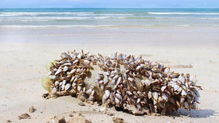Researchers from the Centre for Marine Science and Innovation have developed an equation that can estimate the minimum time an object has spent drifting at sea by counting the number of Lepas anserifera attached to the object.
