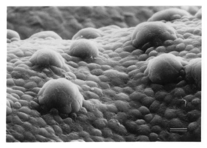 image: Fungiform taste papillae, small structures or "bumps" found on the upper surface of the front two thirds of the tongue.