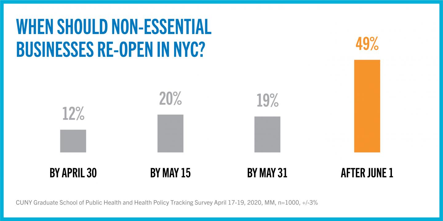 image: Nearly half of New York City residents believe we should wait until after June 1st to reopen all non-essential businesses.