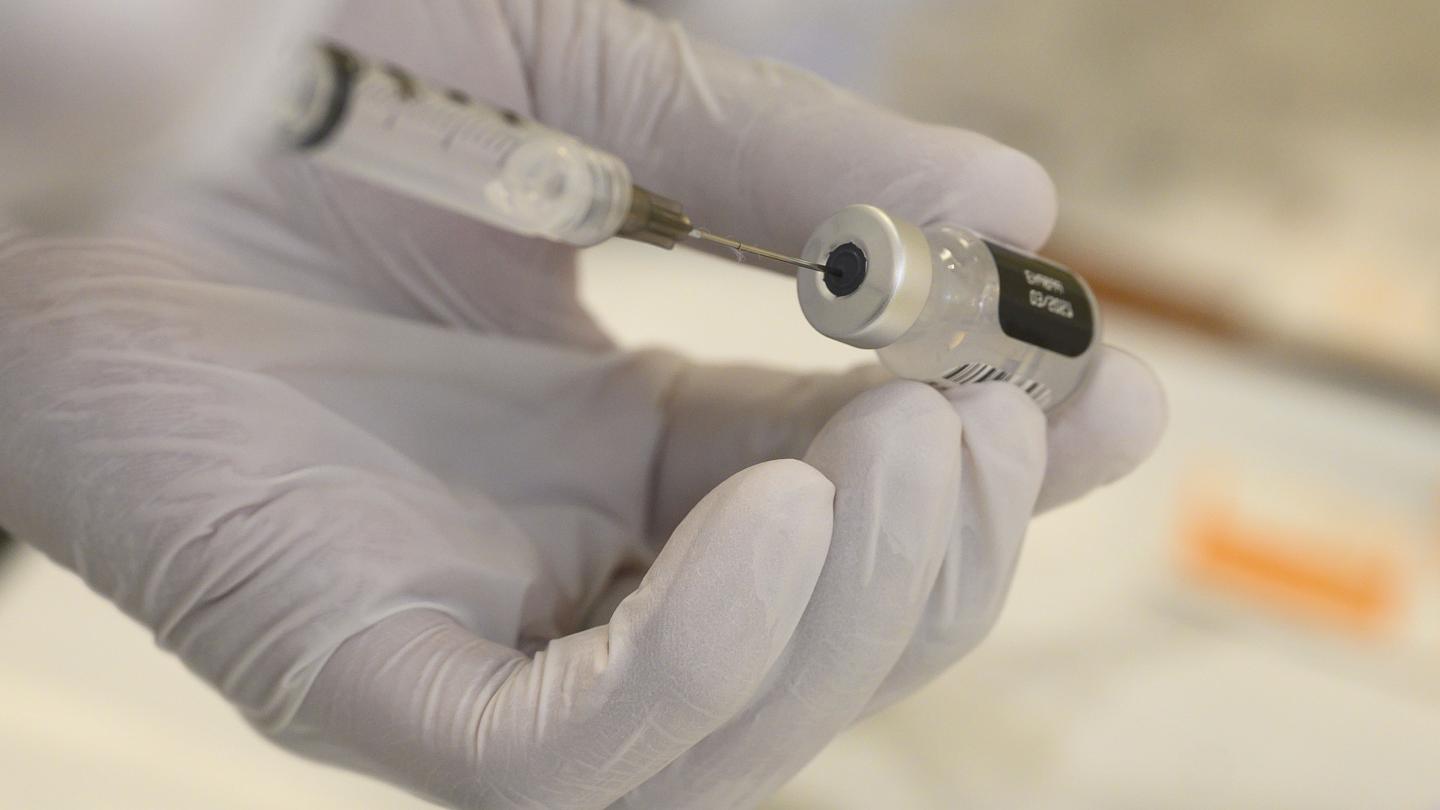 image: A medical assistant prepares a dose of a COVID-19 vaccine to be administered to a patient. Johns Hopkins Medicine researchers recently showed that after one dose of the vaccine, organ transplant patients and other immunocompromised people may not produce high levels of antibodies against SARS-CoV-2, the virus that causes COVID-19.