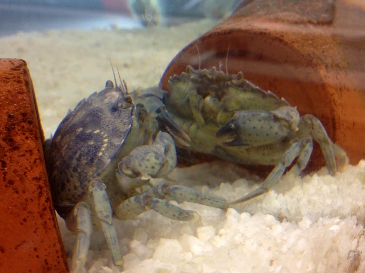 image: A juvenile Jonah crab (Cancer borealis) looks at its reflection.