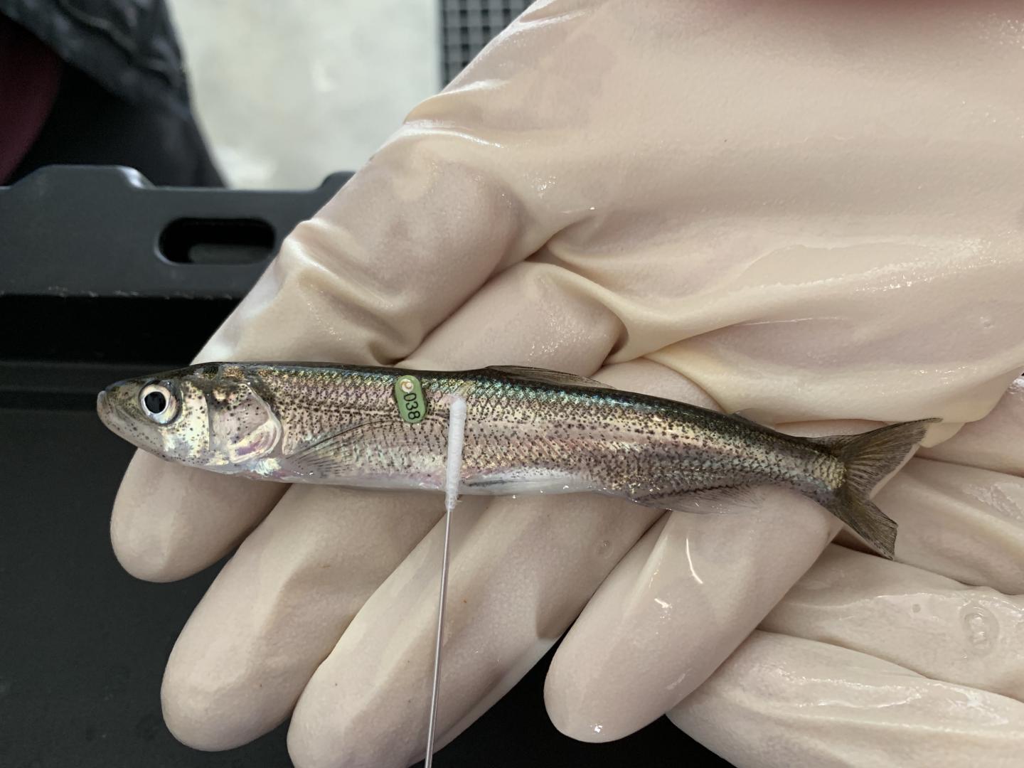 image:Â Longfin smelt can be difficult to differentiate from endangered Delta smelt. Here, a longfin smelt is swabbed for genetic identification through a CRISPR tool called SHERLOCK.