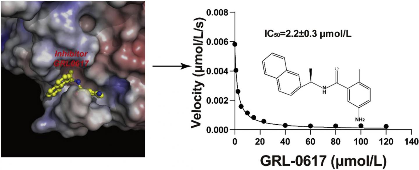 image: This study compared the potency of a collection of SARS-CoV-2 PLpro inhibitors and identified the most potent compound GRL-0617 with the IC50=2.2 μmol/L. Subsequently, the authors revealed the binding mode of GRL-0617 with the protease using crystallographic approach, providing a framework for further inhibitor development targeting SARS-CoV-2 PLpro.